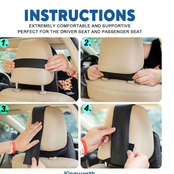 Universal Fit for All Cars: Designed for versatility, this car headrest cushion fits all vehicle types. The adjustable elastic strap ensures a secure fit, keeping the cushion in place without slipping.